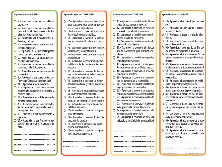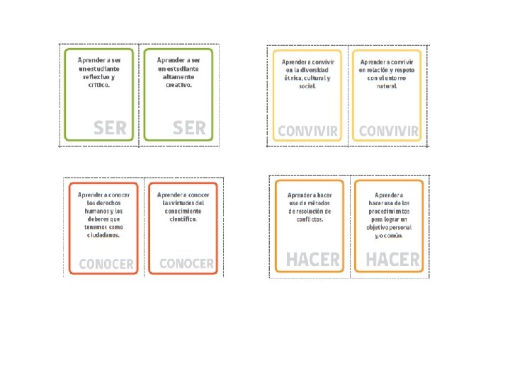 Los cuatro pilares de la educación Jacques Delors Conocer adquirir instrumentos de la comprensión del mundo que lo rodea Hacer para poder influir sobre su propio entorno Aprender Convivir para participar y cooperar con los demás en todas las actividades humanas Ser un proceso fundamental que recoge el proceso de las tres anteriores.