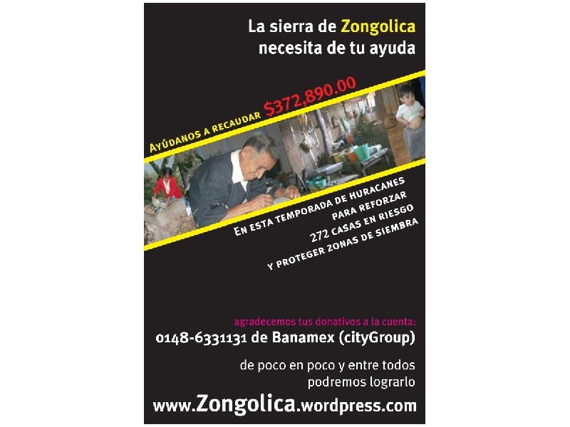 Para seguir las actividades conocer los avances y estar al pendiente del proyecto: http: //www. facebook. com/pages/Ayudemos-a-la-Sierrade-Zongolica/193029459869 y www. zongolica. wordpress. com