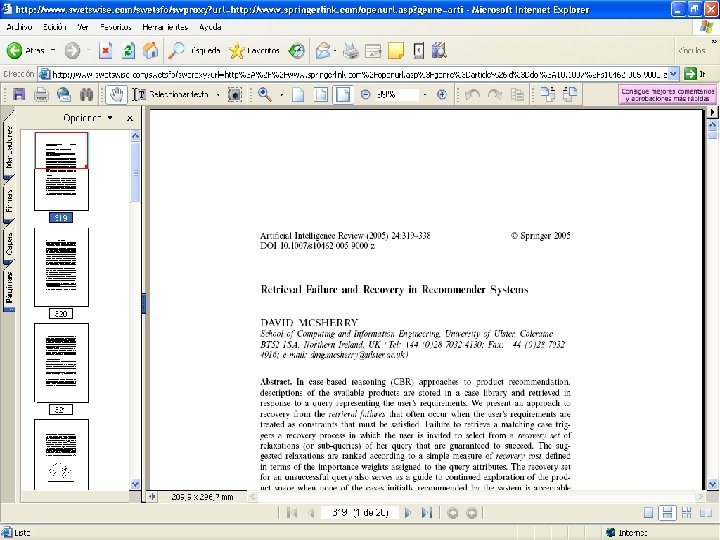 El por qué del DOI n n Las citas a referencias electrónicas son cada vez más abundantes, pero con frecuencia son poco estables En un estudio en el que se examinaron más de 1000 artículos, publicados entre el 2000 y el 2003 en the New England Journal of Medicine, The Journal of the American Medical Association, y en Science, se vió que el 2, 6 % de las citas existentes se referían a documentos publicados en Internet (672/25548) y que en los artículos de más de 27 meses de antigüedad, el 13 % de las citas en Internet estaban inactivas.