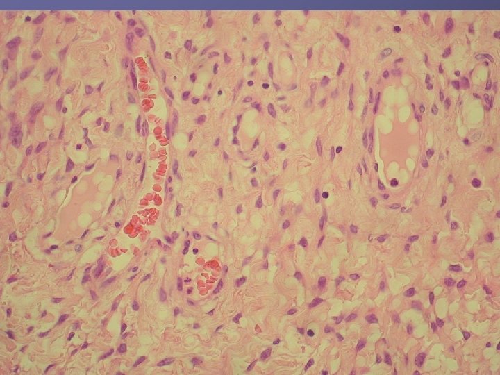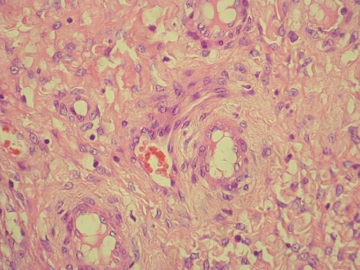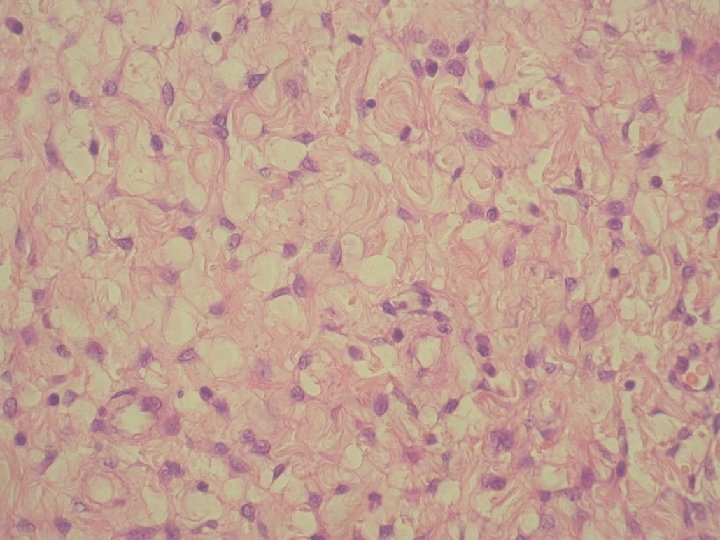 Ø hladkosvalové vlákna a lymfoplazmocytárny infiltrát Ø bohatá vaskularizácia v retiformnej stróme, miestami aj myxoidnej Ø Imuno: silná desmin pozit. Ø CD 34, S-100, alfa aktin, CK, calponin negat. Ø prezentovaná reaktívna stromálna proliferácia publikovaná v dvoch „case reportoch“