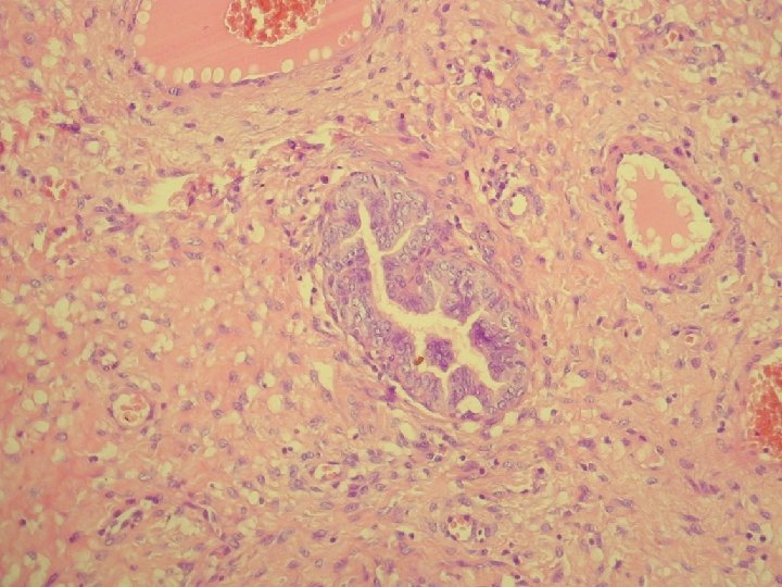Klinicky: chronická abdominálna bolesť, dyspareunia polypoidné hemoragické masy Ø Histologicky: prezencia tubálneho epitelu s variabilnou architektonikou v edematóznej, prevažne fibrotickej stróme Ø glandulárne prevažne tubálne inklúzie z malých epiteloidných buniek s eozinofilnou cytoplazmou, s riasinkami, sekretorické a „peg“ cells