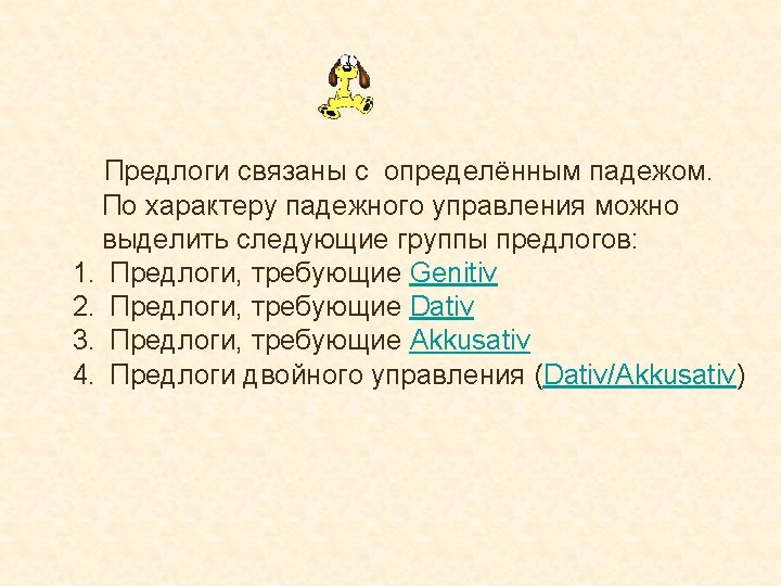 Akkusativ dürch entlang bis für ohne Akkusativ wider gegen против wider вопреки entlang вдоль um gegen Beispiel