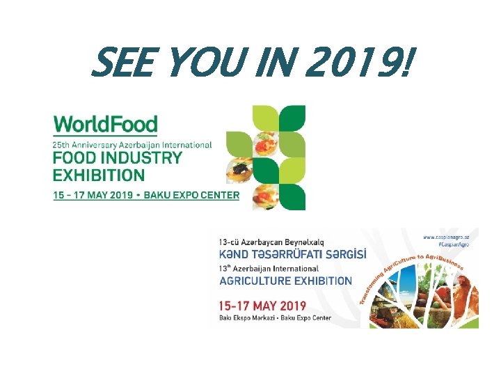PR-report 24 th Azerbaijan International Food Industry Exhibition 12 th Azerbaijan International Agriculture Exhibition Caspian International Packaging, Tare, Label and Printing Exhibition Prepared by PR-assistant Shovkat Hasanova