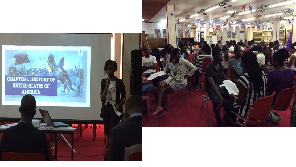 Activité du vendredi 20 janvier 2017 Le vendredi 20 janvier 2017 de 13 h 00 à 18 h 30, les élevés ingénieur en première année des Etudes Comptable supérieures(ECS) s’est tenu à l’American Corner Cette activité avait pour ordre du jour l’importance de l’anglais pour les Experts Comptables. Intervention des Aînées des Etudes comptable supérieures sur les questions de : l’importance l’anglais l’actualité financière américaine et ivoirienne des personnalités de la finance américaine et ivoirienne Suivi d’une projection de film sur « Glory road » qui a édifié les participants Au sortir de cette activité, il ressort que dans l’ensemble, tous s’est
