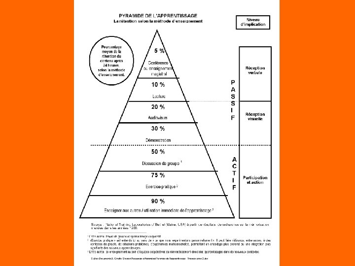 Contraintes / Trucs et astuces Beaucoup de jeunes manquent de motivation; certains ont de la difficulté à se concentrer. L’enseignement se veut très interactif (voir pyramide de l’apprentissage); les sujets choisis le sont en fonction des besoins et des intérêts des participants.