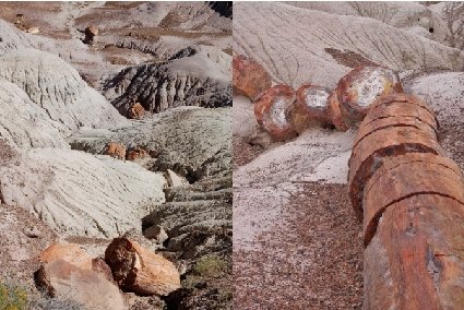 La partie sud renferme la plupart des troncs pétrifiés ainsi que des pétroglyphes amérindiens.