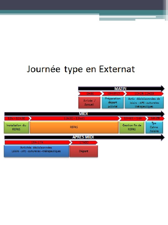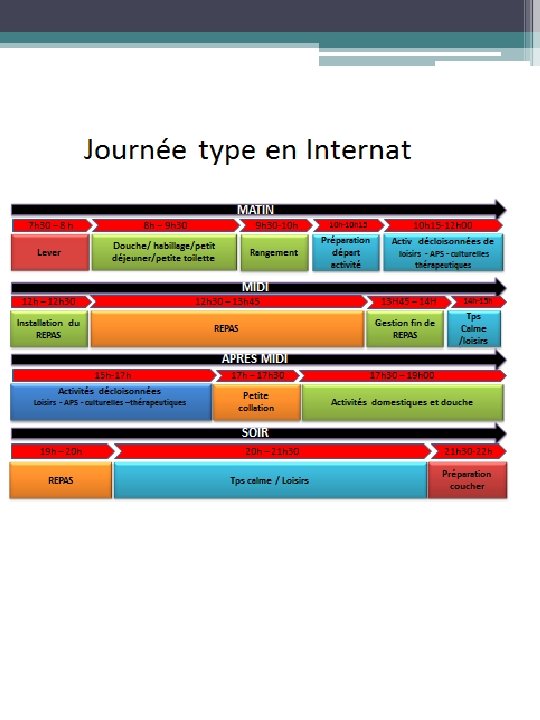 Les usagers bénéficieront d’activités reparties de façon équilibrée entre domaines éducatifs, de loisirs, activités physiques et sociales, Un équilibre sera recherché, dans l’accompagnement éducatif entre la protection et l'indépendance de chaque usager, Les prestations L'offre d'activités éducatives, culturelles et de loisirs Les usagers seront invités tout au long de la journée à participer à des activités adaptées à leurs capacités, Des aides nécessaires seront mises en place pour permettre à chaque usager de faire des activités utiles qui le valorisent socialement , Les activités éducatives auront un but clairement identifié , repérables par l'usager dans l'espace et le temps et tiendront compte des capacités, besoins et intérêts personnels permettant l'utilisation des compétences acquises lors de phase d’apprentissages, Des activités de loisirs individuels et collectifs partant des centres d'intérêt et des capacités de l'usager seront mises en place afin de favoriser l'intégration sociale, à chaque fois que cela est possible, Les engagements de l’établissement Un équilibre sera trouvé pour que chaque usager bénéficie de loisirs organisés et de temps libre et qu’il puisse en jouir de façon adaptée et agréable,