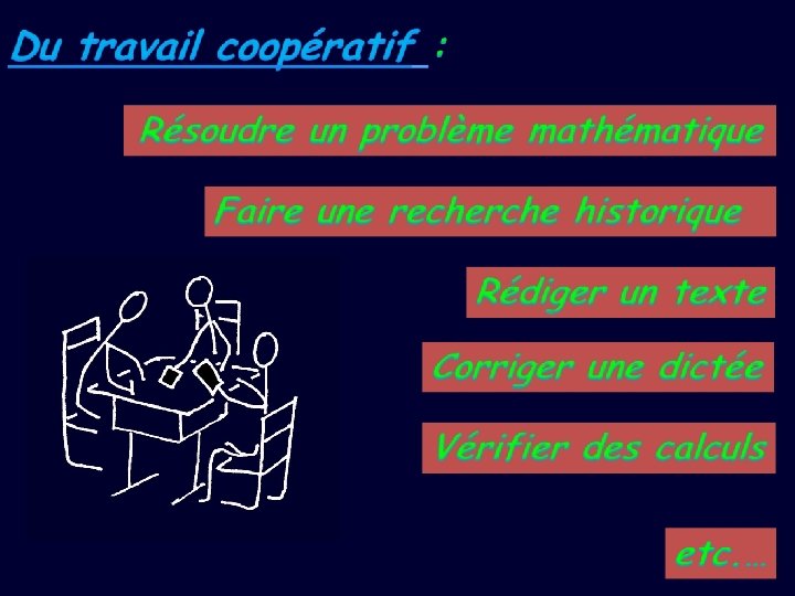L’enseignant est en retrait, observateur et garant de la « sécurité » de la réunion.