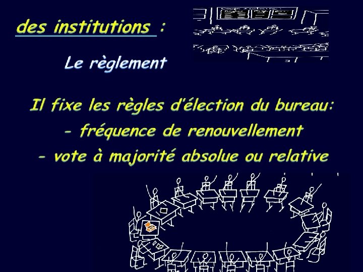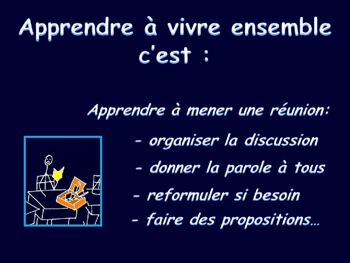 Article 14 : Il est interdit d’insulter un camarade. Celui qui le fait perd 8 points et doit s’excuser. Qui est d’accord avec cet article ? Le Conseil de Coop : une assemblée législative !
