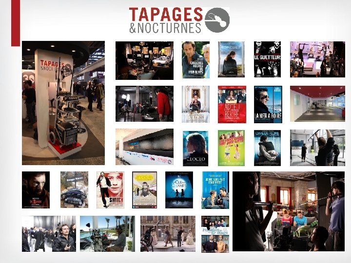Présentation TAPAGES & NOCTURNES fournit depuis plus de 30 ans les équipements de captation sonore destinés aux ingénieurs du son Fiction et Broadcast. TAPAGES & NOCTURNES propose également des solutions de Post. Production. En 2013, TAPAGES & NOCTURNES a participé à plus de 80 tournages de fiction et à de très nombreux tournages de Broadcast.