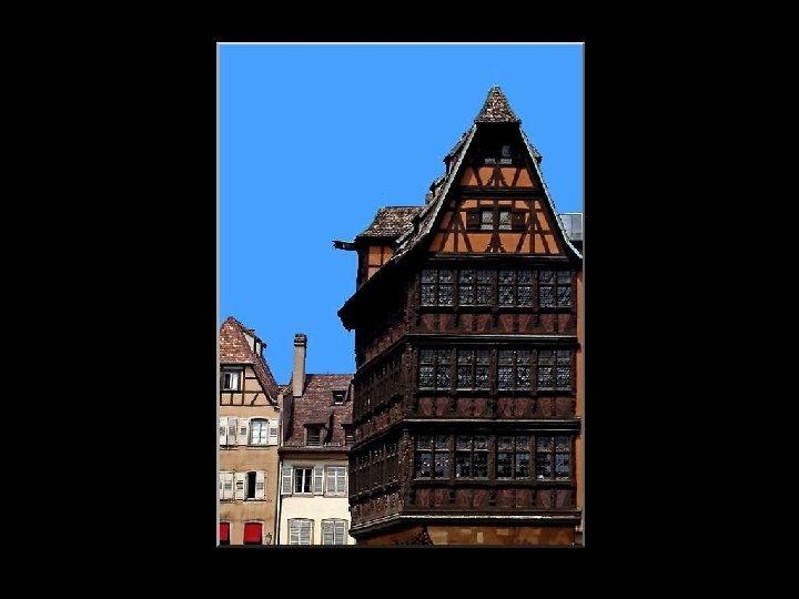 Même si l'architecture en bois est prépondérante, la brique crépie est un matériau très employé dans les constructions publiques et privées de Strasbourg. Plusieurs constructions du 16 e siècle sont en belle pierre de taille Toute l'architecture de la ville est originale. Les façades comportent des motifs d'ornement, en bois, et les toits sont souvent en pente, avec de nombreuses lucarnes, trait typique des bâtiments strasbourgeois.