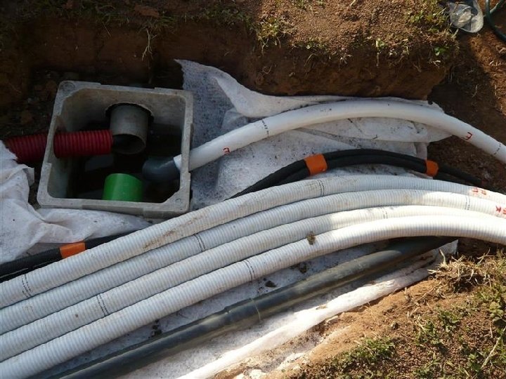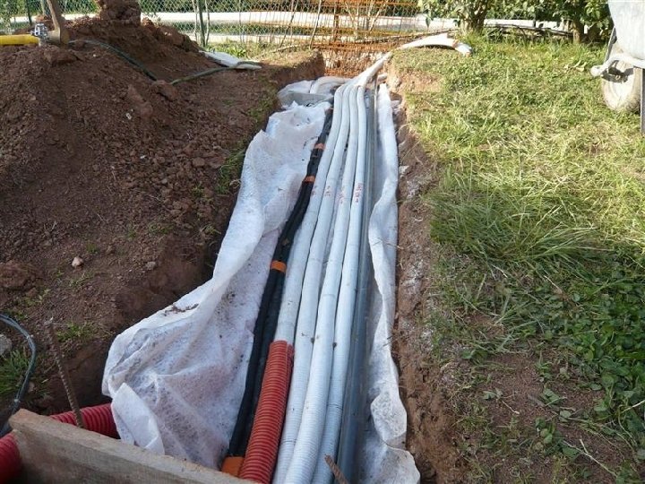 Sable sur tuyaux, géotextile dessus en encore du sable par dessus