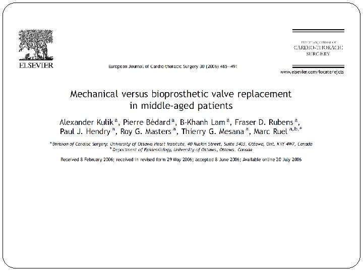 500 pacientes 18 a 50 anos Follow-up médio - 7. 1 ± 5. 3 anos (max. 26, 7 anos) Troca valvar aórtica e/ou mitral