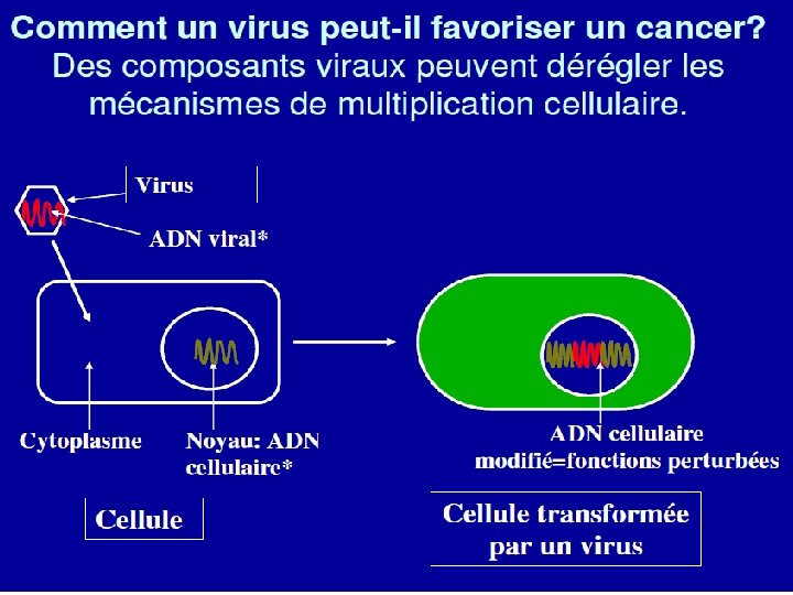 PRINCIPES DE LA CANCEROGENESE VIRALE o o o Les variétés de virus ont des pouvoirs oncogènes différents. Les virus oncogènes modifient le contrôle de la croissance des cellules. Les modèles animaux peuvent révéler les mécanismes de la cancérogénèse virale. Les marqueurs viraux sont habituellement présents dans les cellules tumorales. Un virus peut être associé à plusieurs types de tumeurs. Butel JS. Viral carcinogenesis : révélation of molecular mechanisms and etioiogy of human disease. Carcinogenesis. 2000 Mar; 21(3): 405 -26. 11