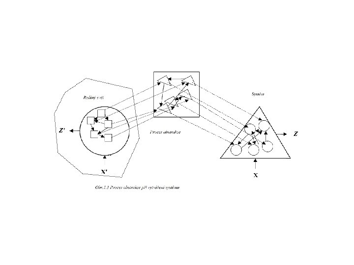Teorie systémů Systémem rozumíme abstraktní popis určité části reality vytvořený za účelem studia vazeb jednotlivých elementárních částí (prvků systému) této reality a popis chování systému jako celku pří změně působící z okolí systému. Systém je tedy definován 1. Strukturou systému, charakterizující jeho vnitřní funkční vztahy; strukturou systému rozumíme jednak způsob uspořádání (organizace) vzájemných vazeb mezi prvky systému : S = { A, W, K, Q} Kde S je systém, A je množina prvků systému W je množina vstupních stavů, K množina vnitřních stavů, Q množina výstupních stavů. přechodová a f výstupní funkce