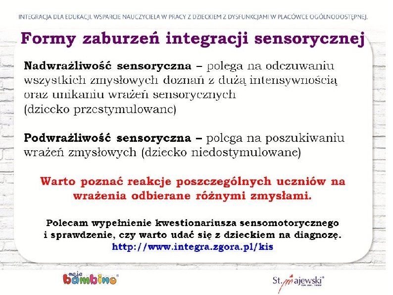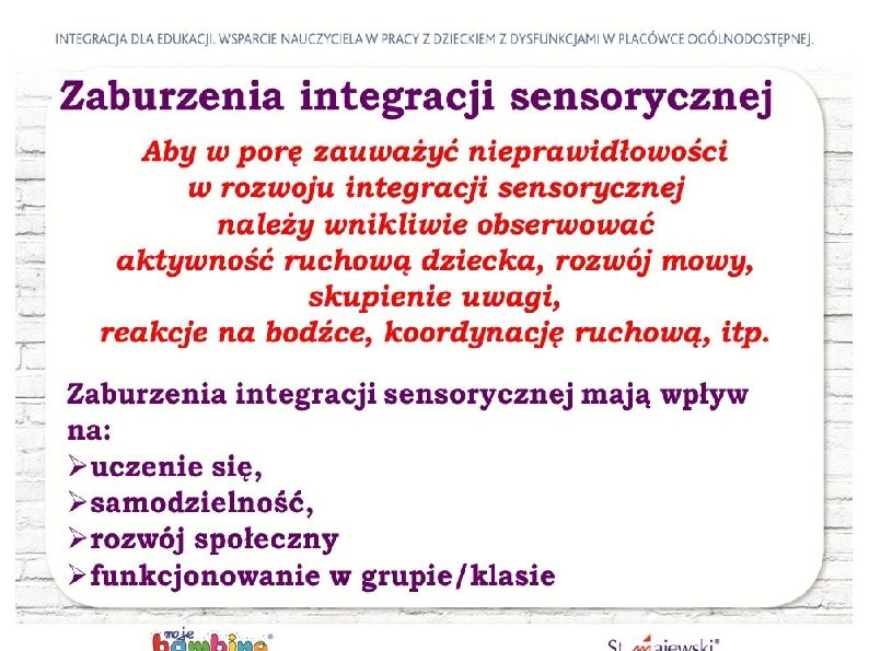 Przychodzi dziecko do szkoy i Integracja sensoryczna program