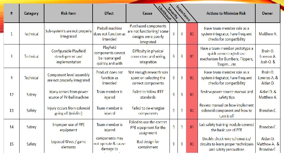 NEXT STEPS 1. Proof of concept: we will do further analysis on our design and prototype a system we believe will work for the interchangeable playfield. 1. Continue to update our risk assessment and mitigation plans 1. Create preliminary mechanical engineering drawings of the case and playfield layout 1. Have a full bill of materials