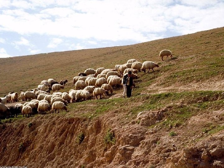 A Day in the Life of a Shepherd… Ø In the morning the shepherd leads forth his flock by calling them to himself. Ø In the field, he would often watch with dogs. Ø He would search for strays (responsible). Ø At least once per day, he would supply the flock with water from streams or wells. Ø In the evening, he counted each sheep by passing them “under the rod” (or his hand) as they entered the opening of the enclosure. Ø Sheep and goats kept together during day but separated at night.