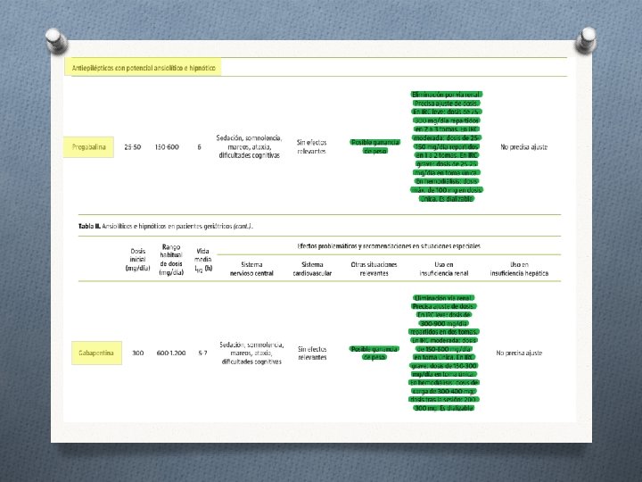 O Insuficiencia renal O Poca información O Iniciar a dosis bajas e ir aumentando control de función renal sobre todo en estadios mod/graves O Pregabalina y gabapentina ajuste de dosis preciso ( única vía de eliminación )