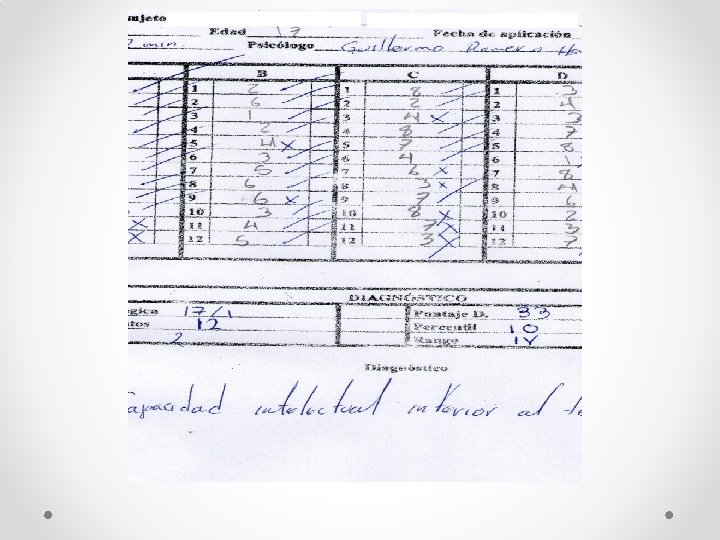 En los resultados arrojados por la prueba se observa que la menor presenta una Capacidad Intelectual Inferior al término Medio, encontrándose en el rango IV de la escala de evaluación propuesta en la Tabla de Diagnóstico de Capacidad Intelectual de la prueba de Raven.