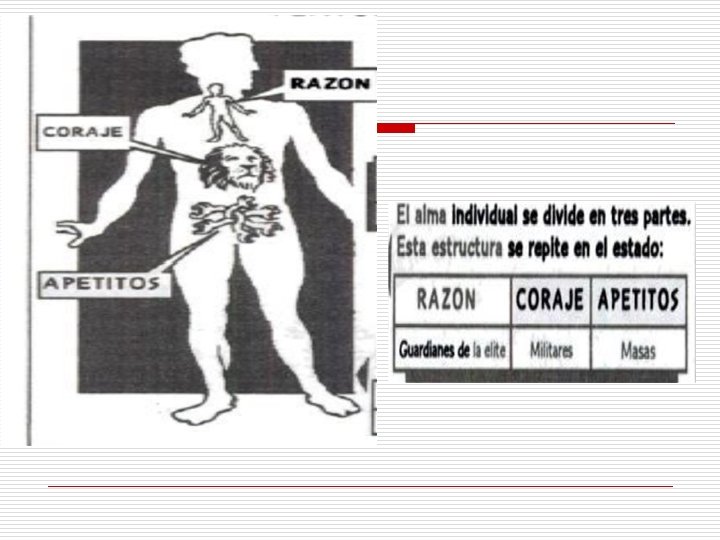 Platón: o o El alma es engañada por los sentidos y solo conoce verdaderamente el mundo por medio del entendimiento y la inteligencia. Las ideas para Platón son realidades que existen.