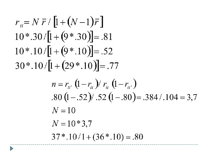 Metodi di stima dell’affidabilità � La formula profetica di Sperman-Brown per calcolare di quante volte allungare il test per ottenere il coefficiente di affidabilità desiderato