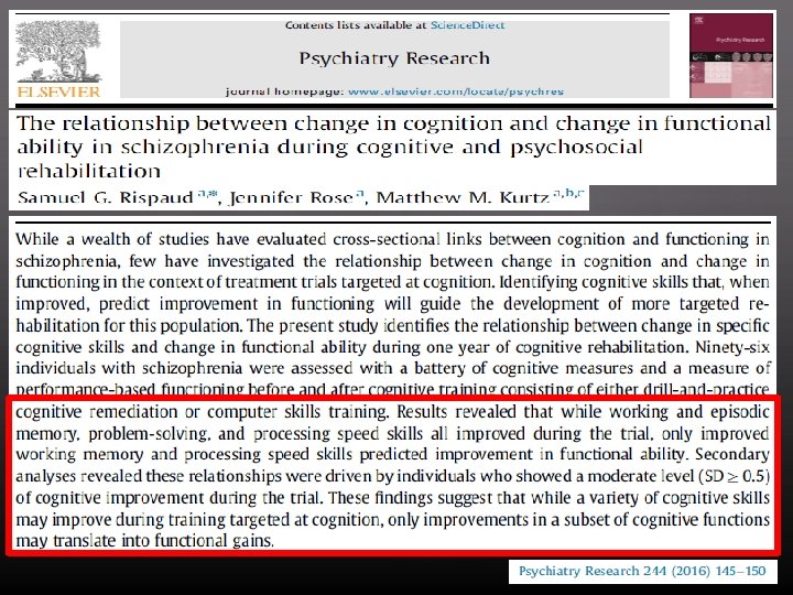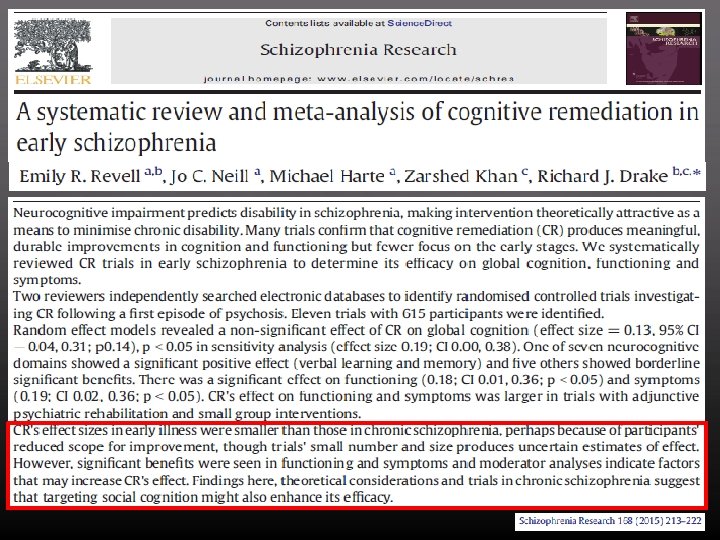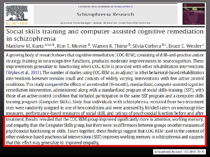 COGNITIVE REMEDIATION AND SOCIAL SKILLS TRAINING IN SCHIZOPHRENIA