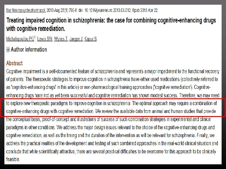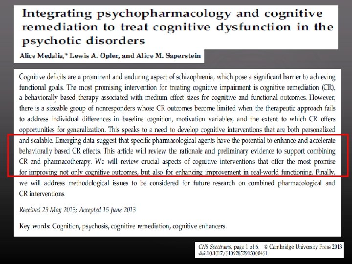 COGNITIVE REMEDIATION AND PHARMACHOTHERAPY IN SCHIZOPHRENIA