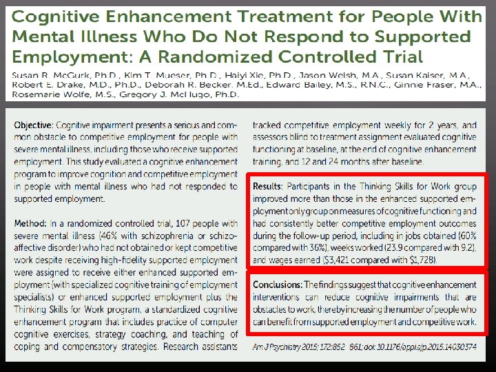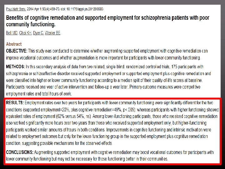 COGNITIVE REMEDIATION AND SUPPORTED EMPLOYMENT IN SCHIZOPHRENIA
