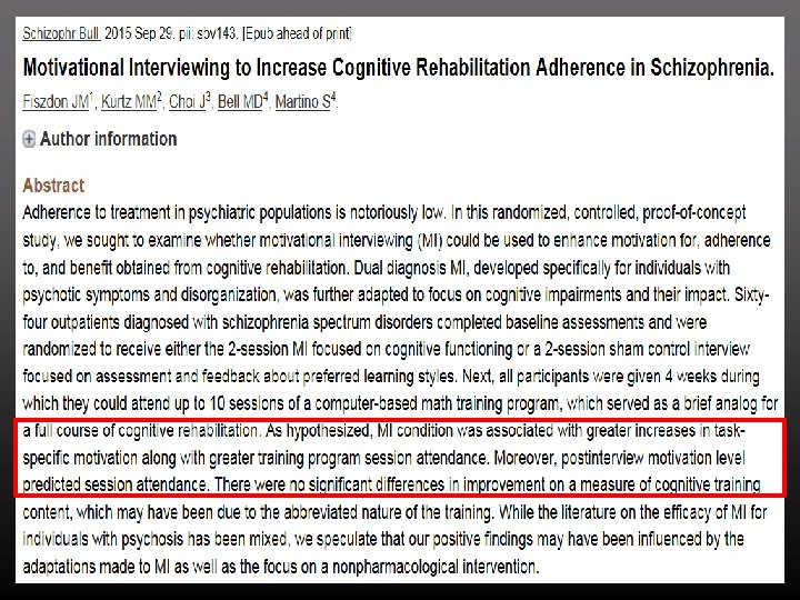 COGNITIVE REMEDIATION AND MOTIVATIONAL INTERVENTION IN SCHIZOPHRENIA
