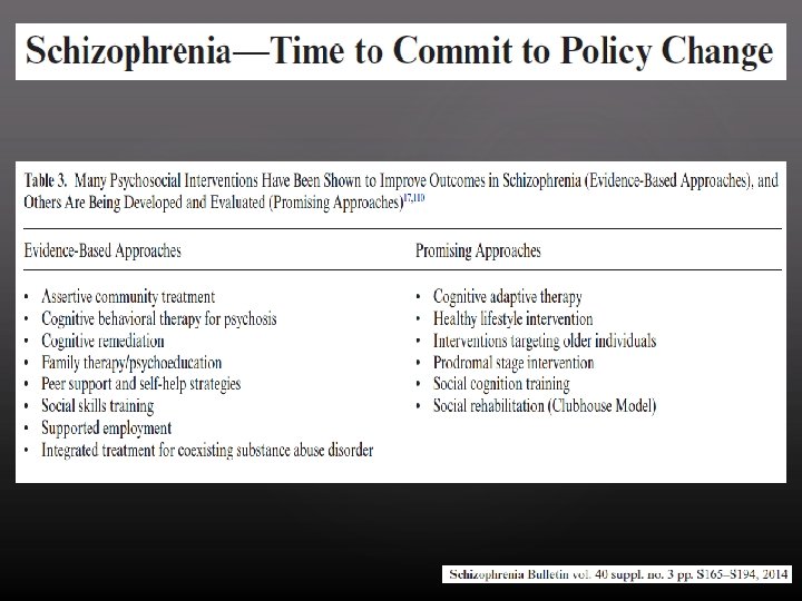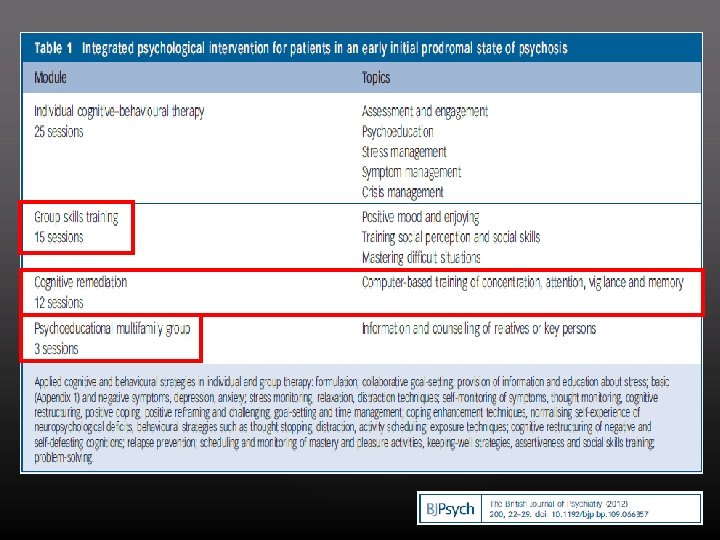 EVIDENCE-BASED PRACTICES 1. ASSERTIVE COMMUNITY TREATMENT (ACT) 2. FAMILY PSYCHOEDUCATION (PE) 3. SOCIAL SKILLS TRAINING (SST) 4. CBT FOR PSYCHOSIS (CBTp) 5. SUPPORTED EMPLOYMENT (SE) 6. COGNITIVE REMEDIATION (CR) Mueser K. T et al,