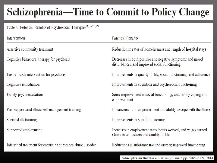 Addestramento alle abilità sociali RIMEDIO COGNITIVO Interventi psicosociali integrati Reinserimento lavorativo Motivazione estrinseca e intrinseca Psicoeducazione famigliare Benessere soggettivo Qualità della vita Cura di sé Sintomi, funzioni cognitive, social cognition Funzionamento sociale Relazioni interpersonali Lavoro/ Scuola Recovery funzionale Autonomia Farmacoterapia MODELLO DI INTERVENTO INTEGRATO IN PSICHIATRIA