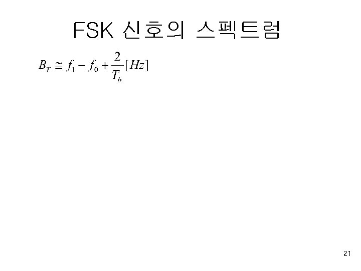 주파수 천이 변조(FSK) BFSK : M=2 w 1 , w 2 BPF VCO (Voltage Controlled Oscillator) 18