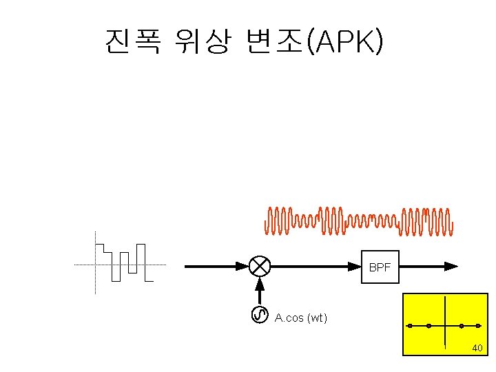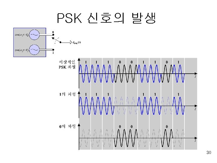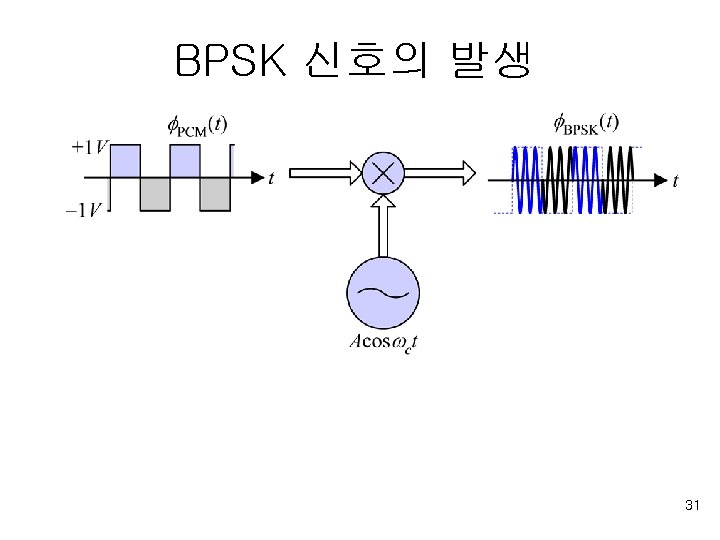 위상 천이 변조(PSK) BPSK : M=2 1= 2= 2 BPF A. cos (wt) 29