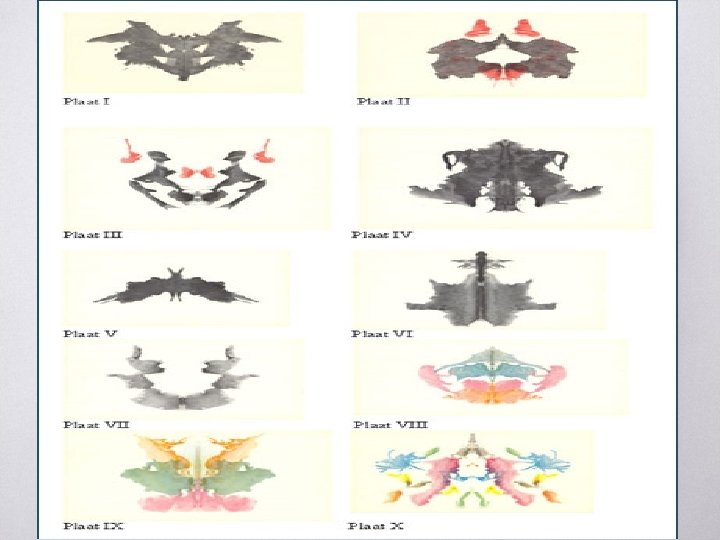 RORSCHACH MÜREKKEP TESTİ ▧ Rorschach Testi 10 adet, mürekkep lekelerinden oluşmuş kart içermektedir. ▧ Bu 10 kart, Hermann Rorschach’nın yüzlerce kart içerisinden son olarak tayin ettiği 10 karttır.