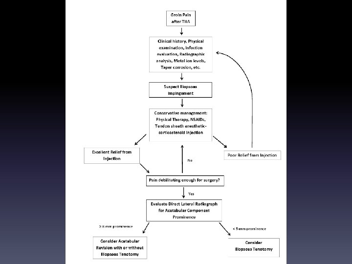 CONCLUSION • IN OR-- WATCH OUT FOR ANTERIOR IMPINGEMENT • HOLD THE PT • FOLLOW THE ALGORITHIM : RELEASE PSOAS for <8 mm AND/OR REVISE CUP FOR >8 mm in CHRONIC CASES