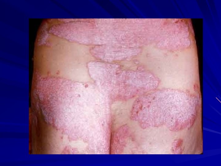 Psoriazis invertat(atipic) La obezi, dzaharat, copii- apare in plicele inghinale, submamare, axilare