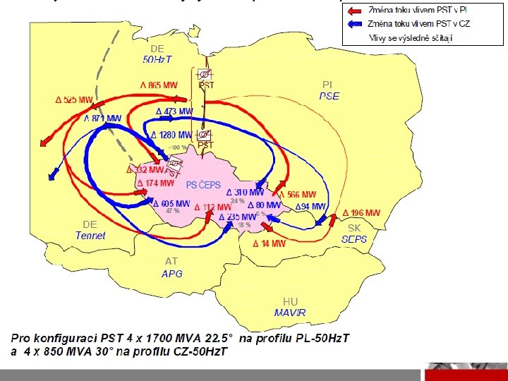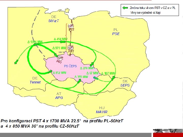 Hlavní závěry vycházející z obou studií § Bez PST v uzlu HRD by v PS ČEPS docházelo by k výraznějšímu neplnění N-1, případně přetěžování vedení i při plném schématu PS § Instalace PST na přeshraničních vedeních 400 KV V 445/6 z uzlu HRD do 50 Hz. T - vhodné opatření § Uvažovány PST o celkovém průchozím výkonu 1600 až 1700 MVA na vedení – Kontrola v časovém horizontu 2015 a 2022 § Regulační rozsah ve vstupních ověřovacích výpočtech byl modelován o velikosti až ± 50°. – Pro požadované omezení přeshraničních toků 50 Hz. T – ČEPS je v rozmezí ± 30° až ± 40°