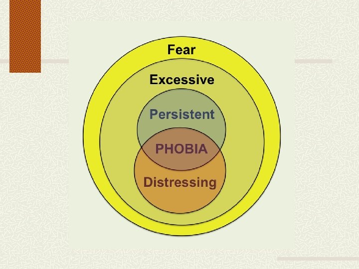Presentation and management When confronted with the feared object or situation, the phobic person experiences intolerable anxiety. Patient usually realizes the fear is unreasonable. Management : explain each step of treatment in detail before carrying it out.
