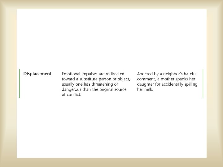 Displacement • Shifts an unacceptable impulse toward a more acceptable or less threatening object or person