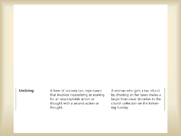 Undoing • Unconsciously neutralizing an anxiety causing action by doing a second action that undoes the first.