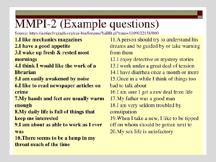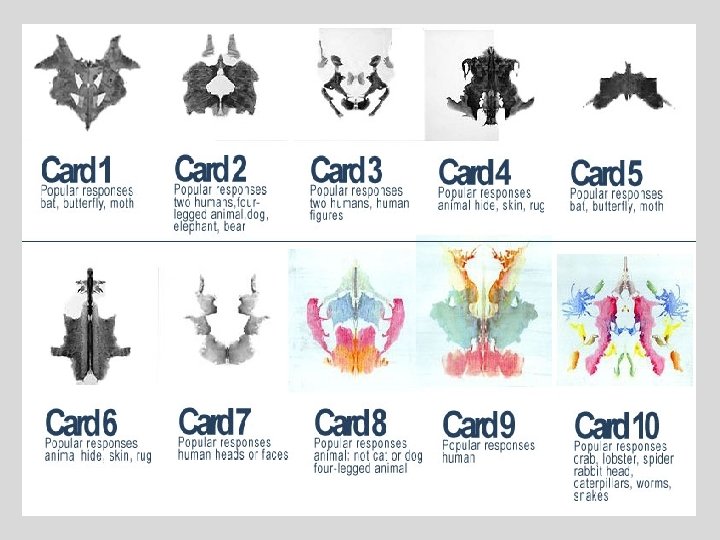 Personality Tests • These are used to assess the basic personality style. • Eg: Minnesota Multiphasic Personality Inventory (MMPI), Rorschach inkblot test.