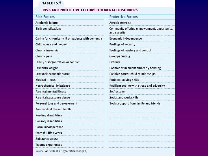 DSM-IV-TR • Divides mental disorders into 17 major categories • Includes the symptoms but not the causes or treatment of each disease • Lists and describes 250 specific psychological disorders