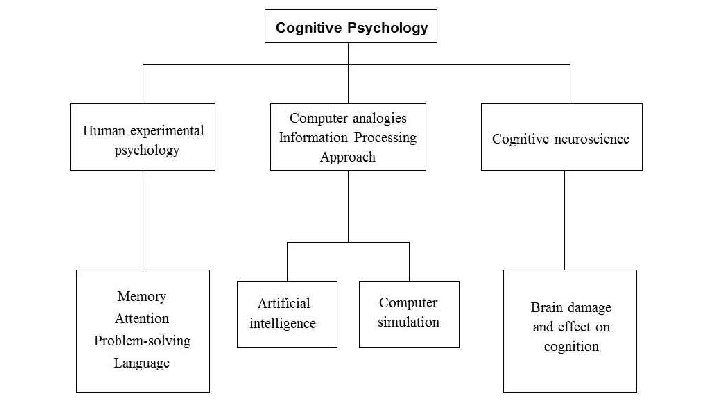 Cognitive Approach The cognitive approach to psychology is the study of thought and mental processes. Another way to say this is that they study cognition, defined as “the mental act or process by which knowledge is acquired”. It views people in a similar way to computers, in that we take in information (input), process it, and then respond in a certain way (output). Very scientific approach, and has led to contributions to language and memory. Notable cognitive psychologists include Jean Piaget and Noam Chomsky. Sample questions a cognitive psychologist might ask: How do we use information in remembering? Reasoning? Solving Problems?