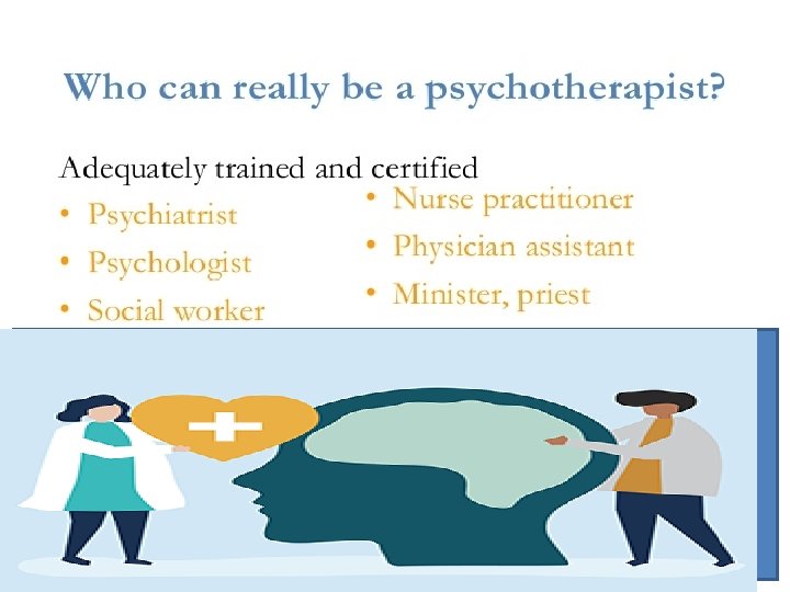 HOW LONG ………? ? • Most psychotherapy today is short-term and lasts less than a year. • Most common mental disorders can often be successfully treated in this time frame, often with a combination of psychotherapy and medications.