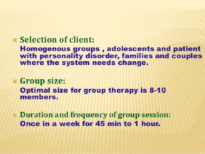WHEN THIS THERAPY IS successful? ? ? • Psychotherapy is most successful when the individual enters therapy on their own and has a strong desire to change. • If you don’t want to change, change will be slow in coming.