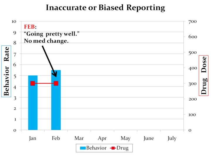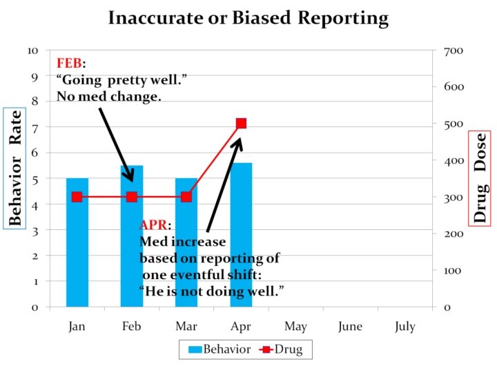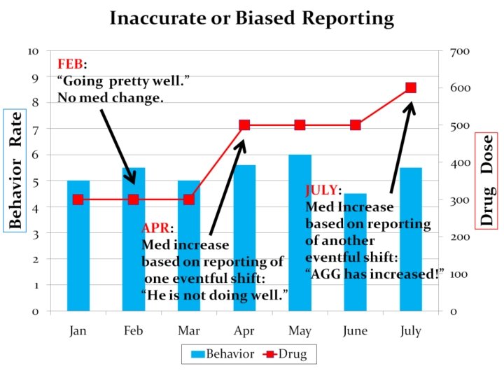 #6 Inaccurate or Biased Reporting of Data “If a clear, concise visual presentation of the behavioral data is not available, the prescriber may default to an acceptance of the subjective opinion of whichever staff member happens to accompany the patient on that day. ”