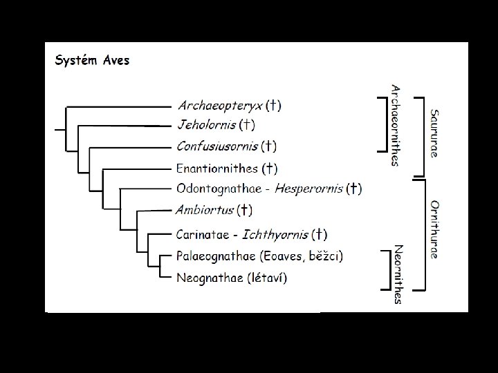 Systém ptáků Passerimorphae - Psittaciformes, Passeriformes Falconiformes - Coliiformes, Trogoniformes, Coraciimorphae Bucerotiformes, Piciformes, Coraciiformes Strigiformes - Accipitriformes Accipitrimorphae Pelecanimorphae Procellariimorphae Gaviimorphae Passerea Neoaves Columbea - Pelecaniformes Suliformes Ciconiiformes - Sphenisciformes, Procellariiformes - Gaviiformes Phaethontimorphae Cursorimorphae - Gruiformes, Charadriiformes Opisthocomiformes - Caprimulgiformes, Apodiformes Caprimulgimorphae - Cuculiformes, Musophagifomes, Otidimorphae Otidiformes Pterocliformes, Columbimorphae - Columbiformes, Mesitornithiformes - Podicipediformes, Phoenicopterimorphae Phoenicopteriformes