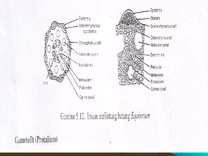 lanjutan – Saluran karinal terletak di sebelah dalam dari ikatan pembuluh. – Saluran valekular yang terletak di dalam kortek yaitu di sebelah luar dan berseling dengan saluran karinal. saluaran pusat dan karinal berfungsi untuk menyimpan air sedang saluran valekular berfungsi untuk menyimpan udara.