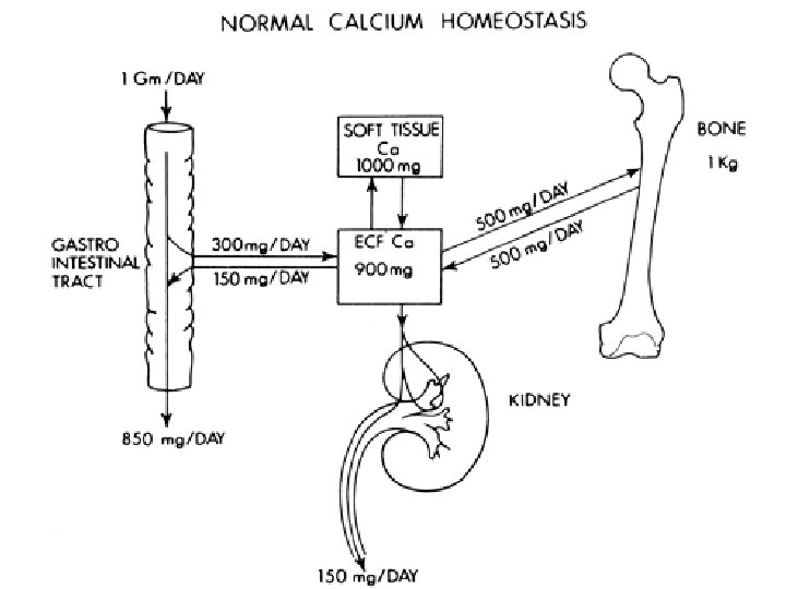Schematic illustration contrasting calcium homeostasis in human pregnancy and lactation compared with normal Pregnancy-induced changes in maternal Ca metabolism Intestinal Ca absorption↑ Urinary Ca excretion↑ “Absorptive hypercalciuria” Total Ca ↓ Ca++ ↔ PTH ↓ PTHr. P ↑ E 2, PRL, Placental Lactogen ↑ Bone resorption markers ↑ BMD ↔↓ Fetal Ca metabolism Ca: 25 -30 g Ca higher than the mother PTH↓ Calcitonin ↑